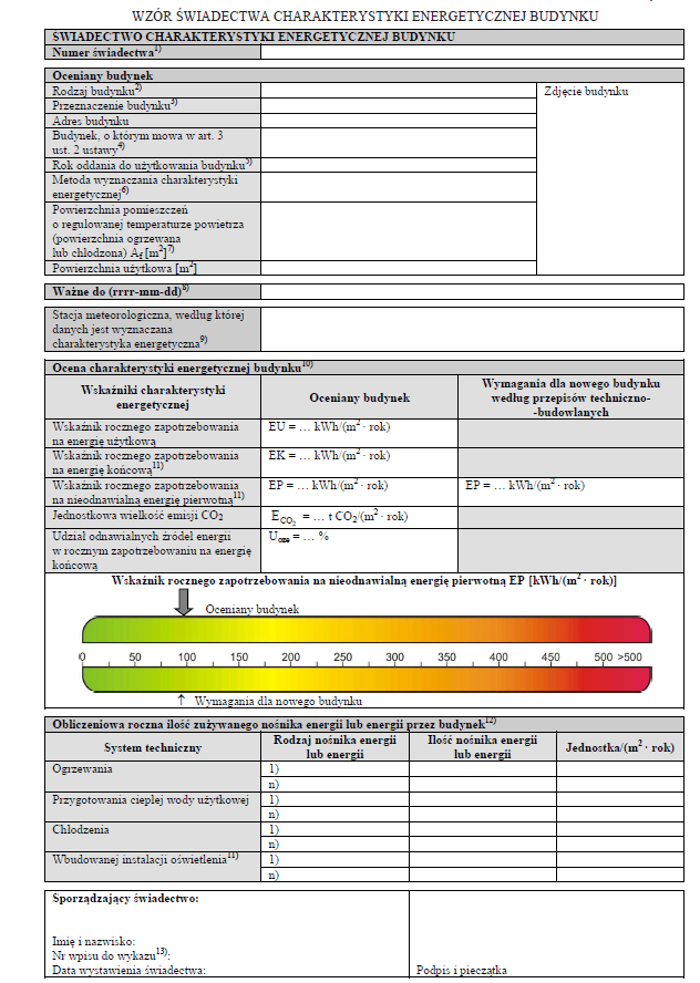 A mandatory review of regulations concerning the minimum requirements in the field of the energy performance of buildings was made for EU Member States. The most important changes in this area translated into amendments to technical and building regulations regarding thermal protection and energy consumption in buildings. The currently applicable requirements for the energy performance of buildings can be found in the regulation on technical conditions to be met by buildings and their location.