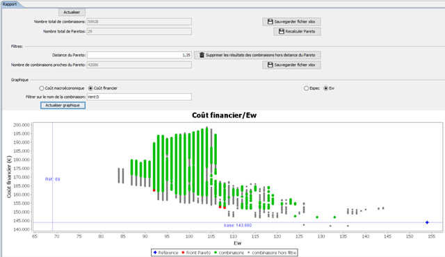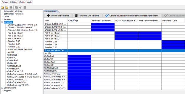 The tool makes it possible to automatically apply a large number of variants to the reference buildings modelled using the regulatory EPB software. It also makes it possible to extract energy performance results which are then automatically processed in a calculation cost unit. All possible simulations can therefore be tested. The tool then presents the results in terms of the global cost of the energy measures under consideration (Figure 8 and Figure 9).