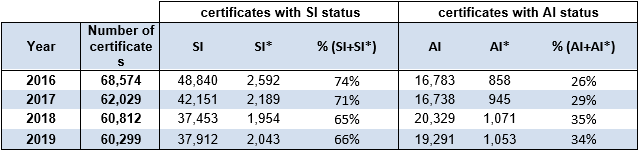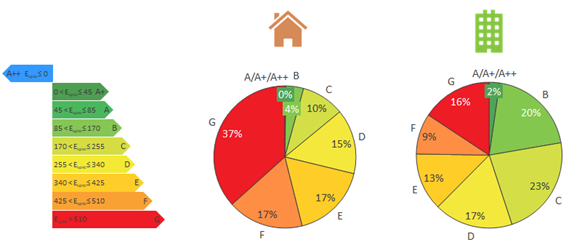 Based on requirements for NZEB (see requirements in Tables 1 & 2), 5,719 residential buildings and 236 non-residential buildings included in the EPB database already meet the definition of NZEB, representing 11.6% and 18.2% respectively of total final EPB statements. All these building units were actually built by the end of 2019.
