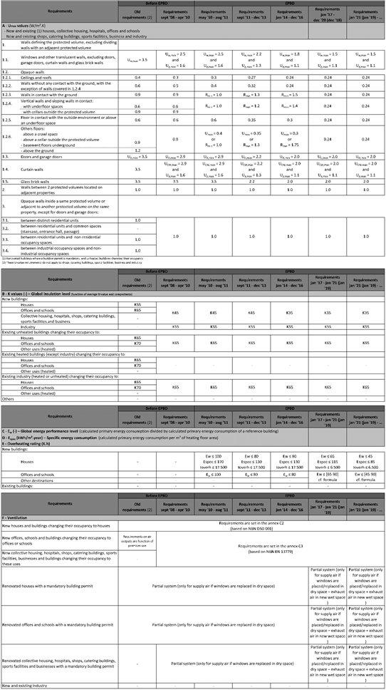 Since January 2017, the level of regulatory requirements has been tightened. The previous reinforcement dates back to January 2014. A new reinforcement corresponding to NZEB has been applied on 1 January 2019 for public buildings and will be applied on 1 January 2021 for all other buildings. An overview of the requirements is presented in Table 1.