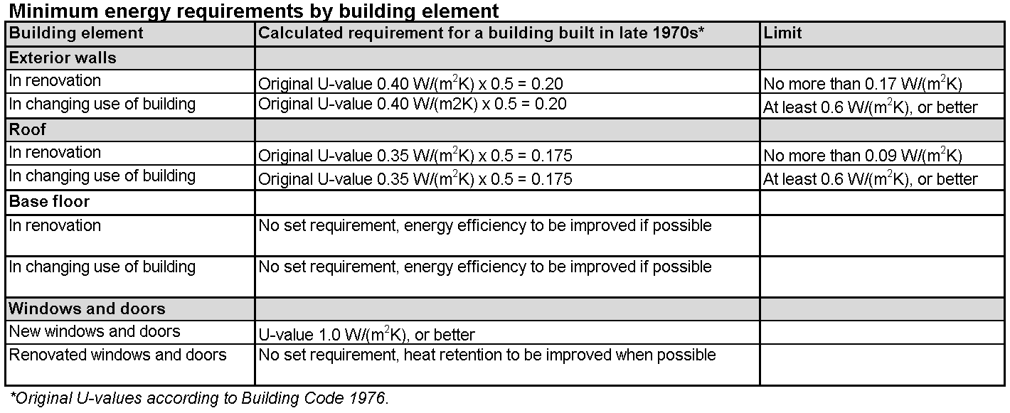 Table 5: Example of minimum energy requirements by building element, for energy efficiency improvements in a late 1970s building.