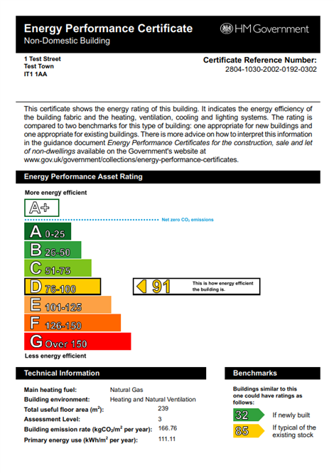 Figure 11. First page of Northern Ireland non-domestic EPC.
