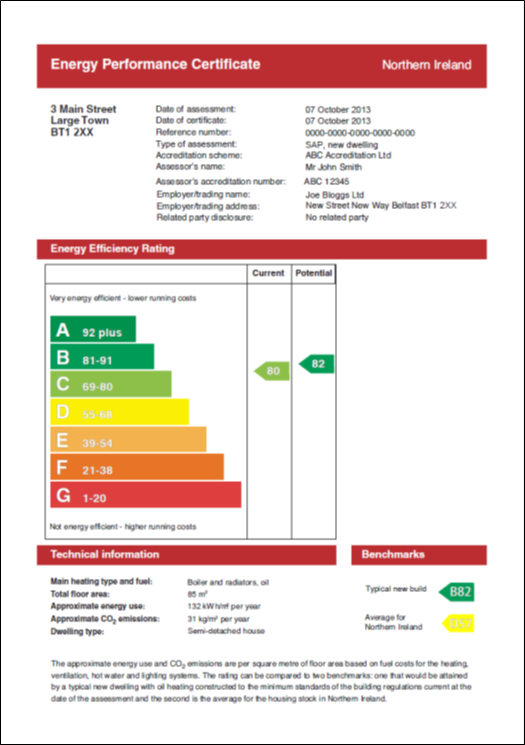 Figure 10. First page of Northern Ireland EPC for new domestic units.