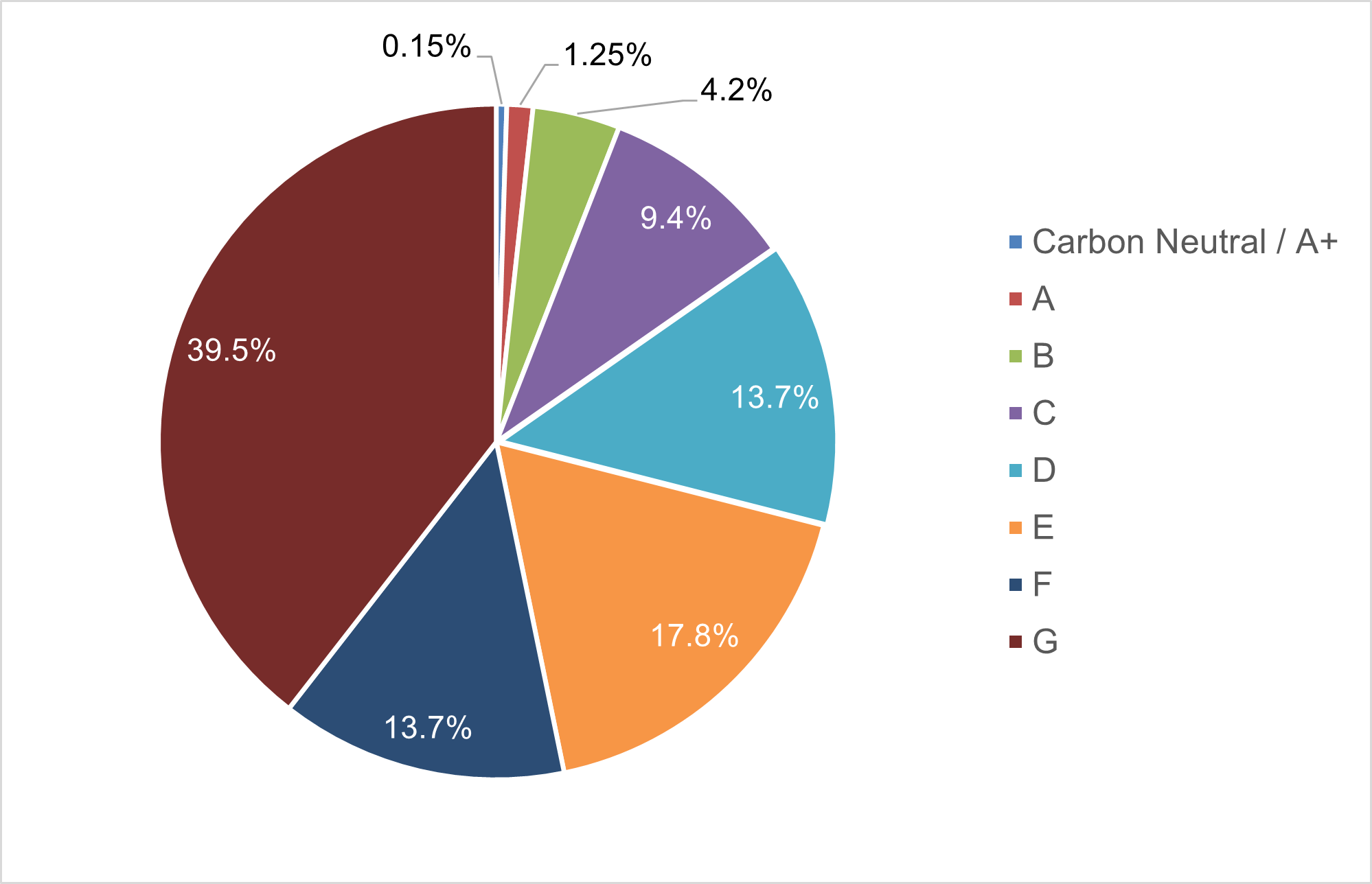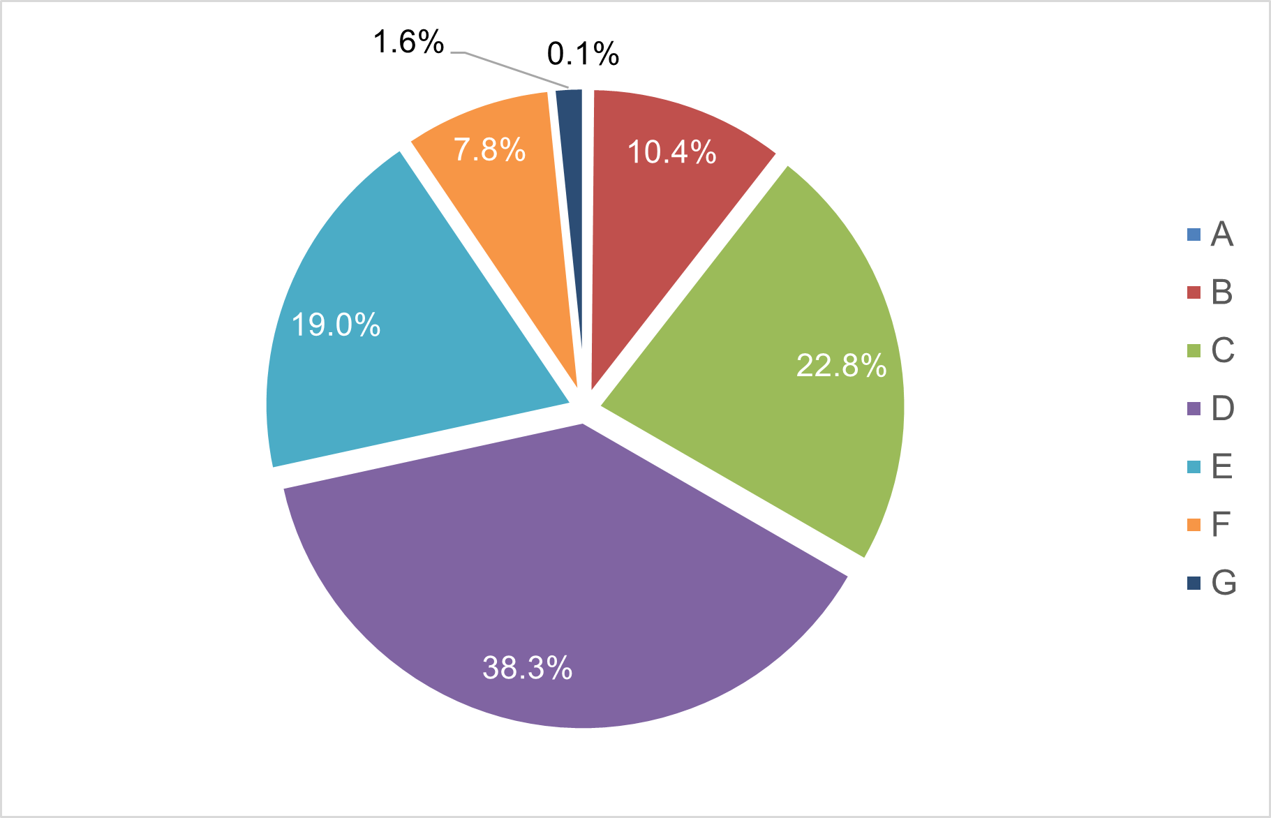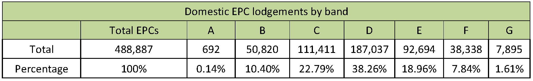 Figure 12. Breakdown of Domestic EPCs by EPC band in Northern Ireland to December 2019.