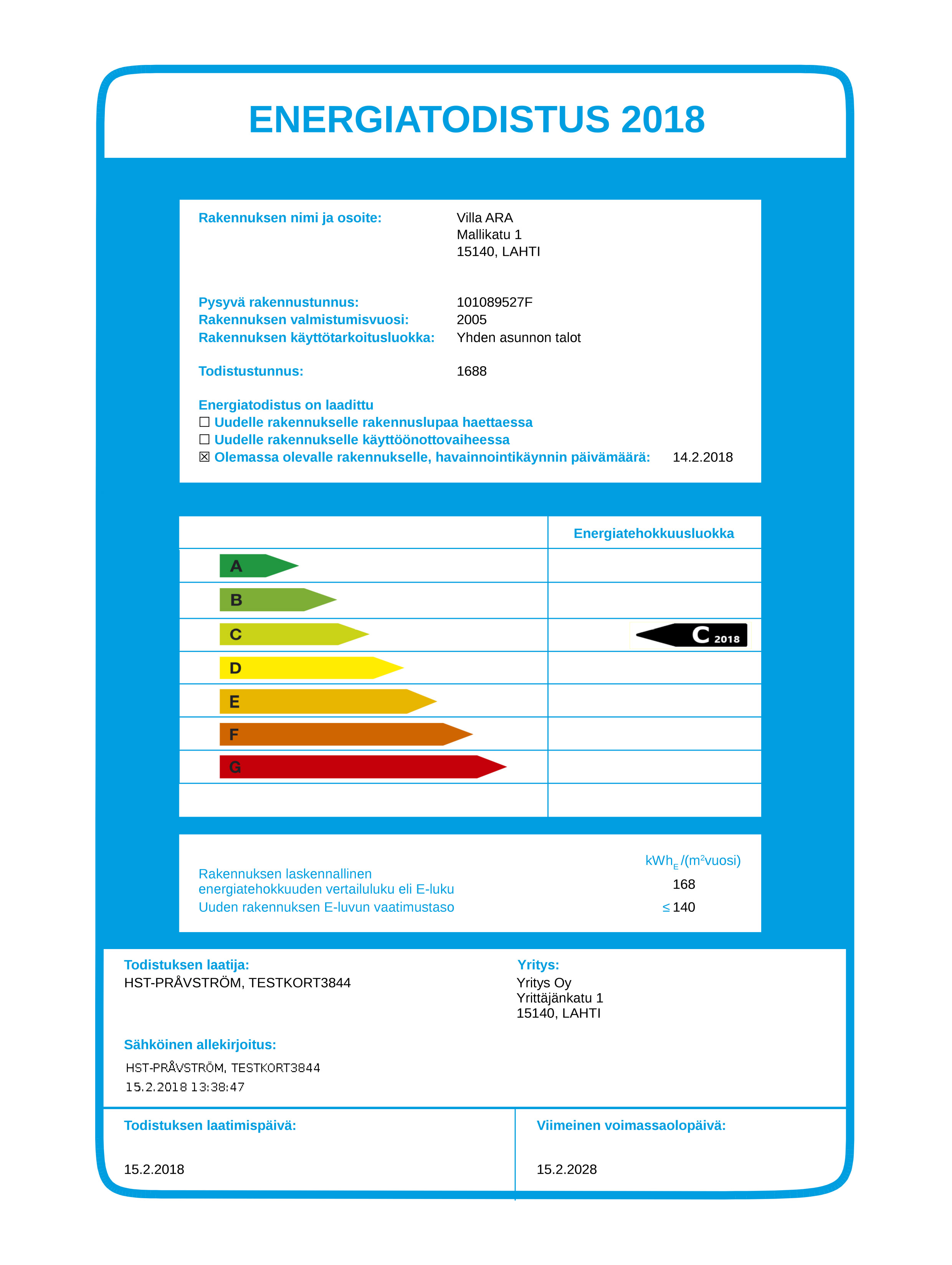 Figure 6: Current format of the EPC in Finland (new EPC introduced in 2018).