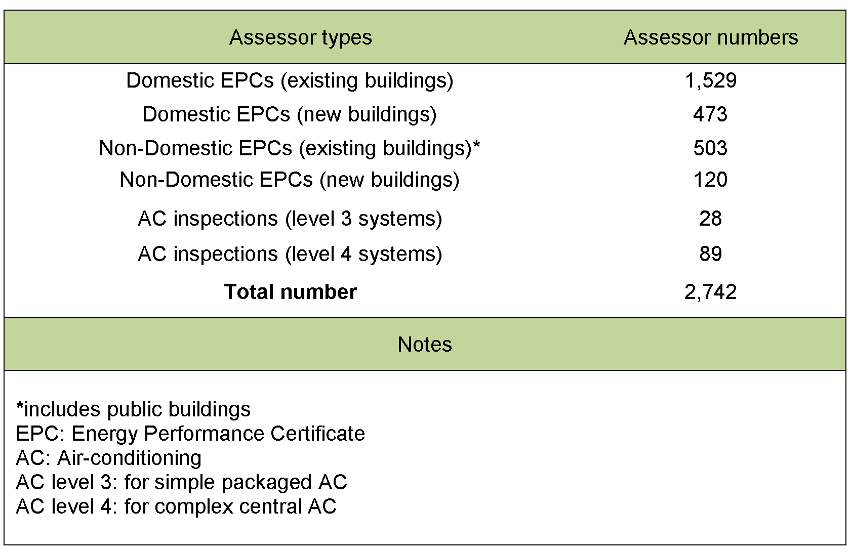 Table 8: The type and number of registered energy assessors in England and Wales.