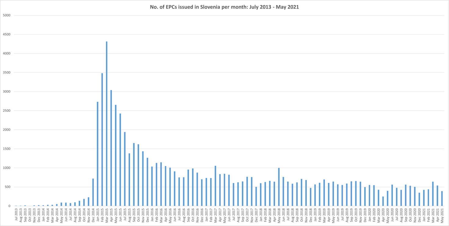 Since the legislation changed in June 2013, about 62,672 EPCs have been sent to the ARA, of which 34,034 have been produced in 2015. At the end of 2019, there were altogether 138,548 EPCs in the EPC database that was launched in 2015.