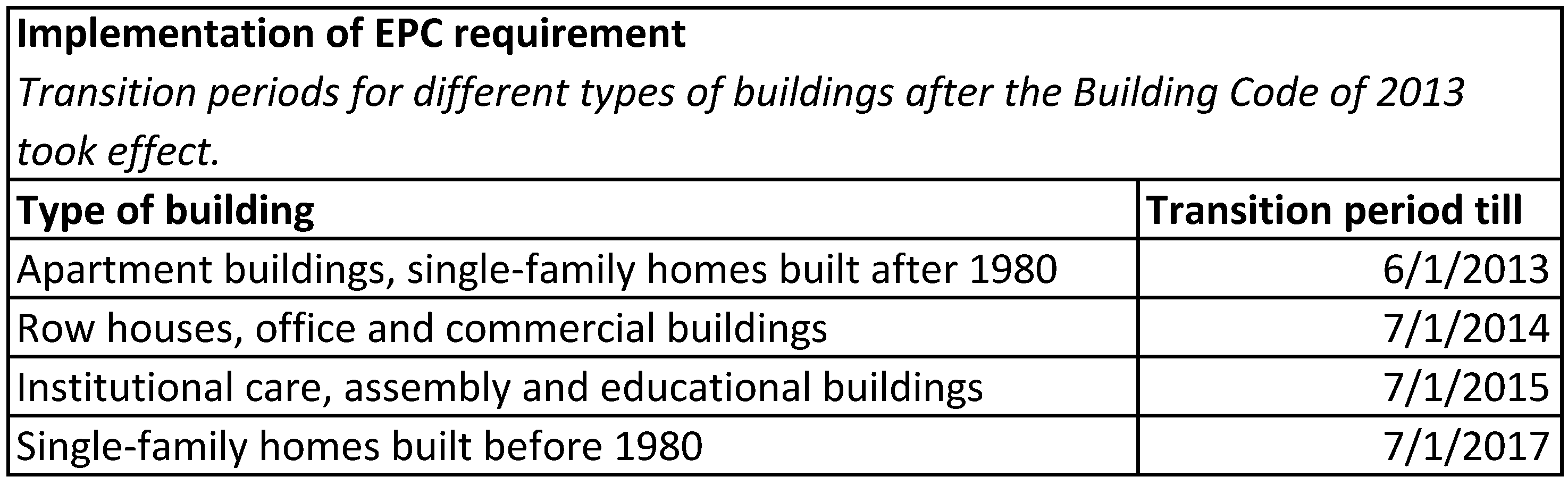 New building types were included on 1 June 2017; an EPC is now also required for swimming halls, indoor skating rinks, warehouses, logistics buildings and motor vehicle buildings (garages over 50 m2).