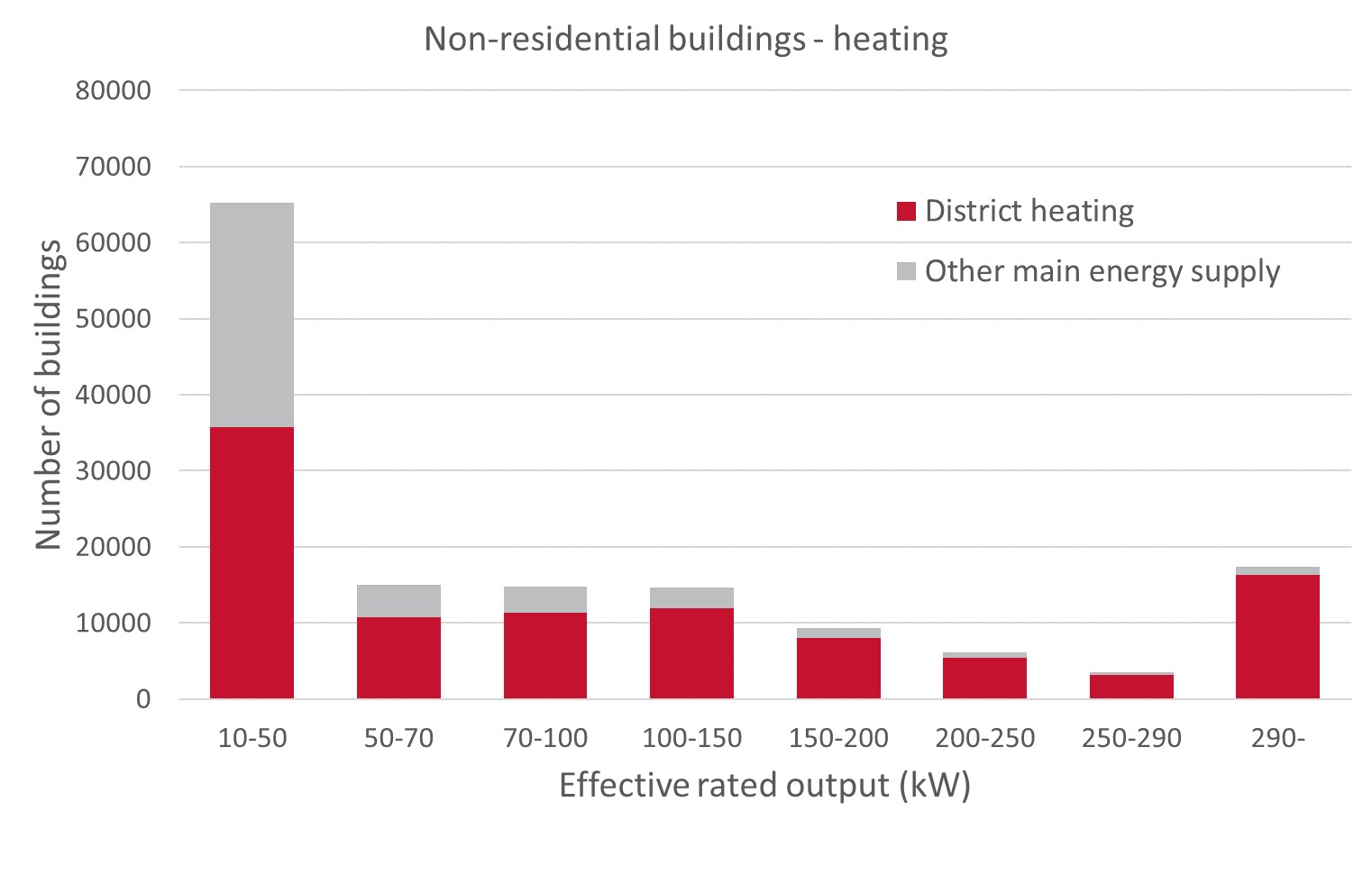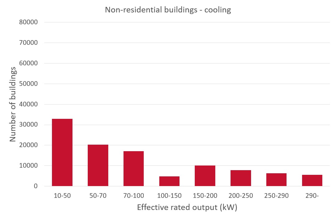 Figure 3. Distribution of estimated effective rated output for heating, non-residential buildings (Boverket BFS 2021:3 (BED 11)). |