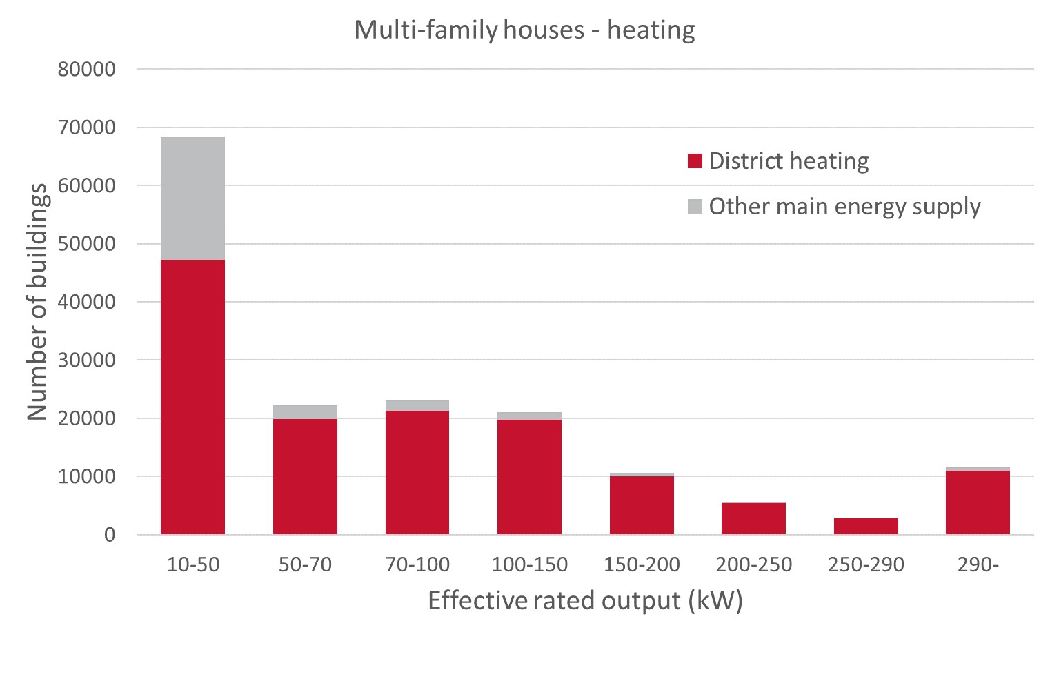 Figure 2. Distribution of estimated effective rated output for heating, residential apartment buildings (Boverket BFS 2021:3 (BED 11)). |