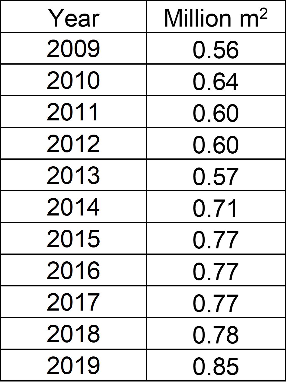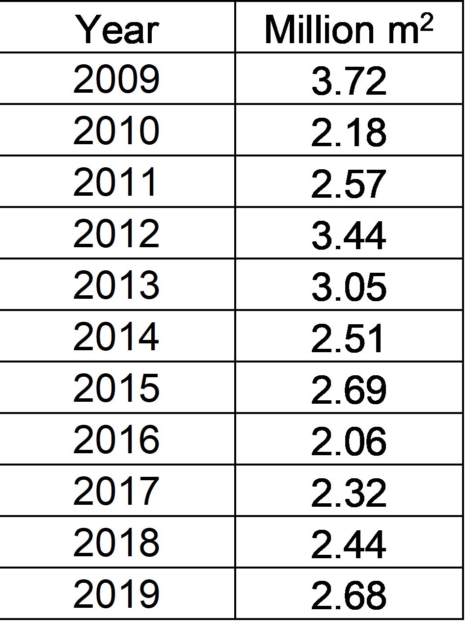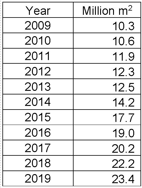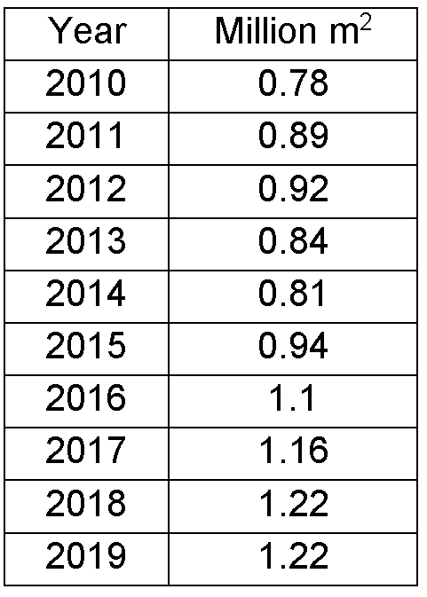 | Luxembourg | Approx. 0.9 Million m2/year | |||||||||