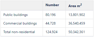 | The Netherlands | Residential buildings: 8.2 million m2 Non-residential buildings: not available |