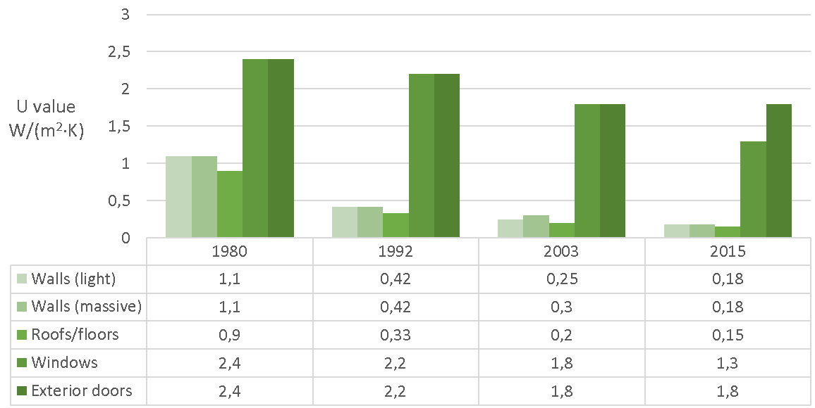 Table 3 shows the evolution of requirements for technical building systems in residential buildings.