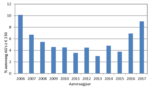 Figure 16. The share of energy performance declarations with an administrative fine for non-compliance per year (application of building permit).