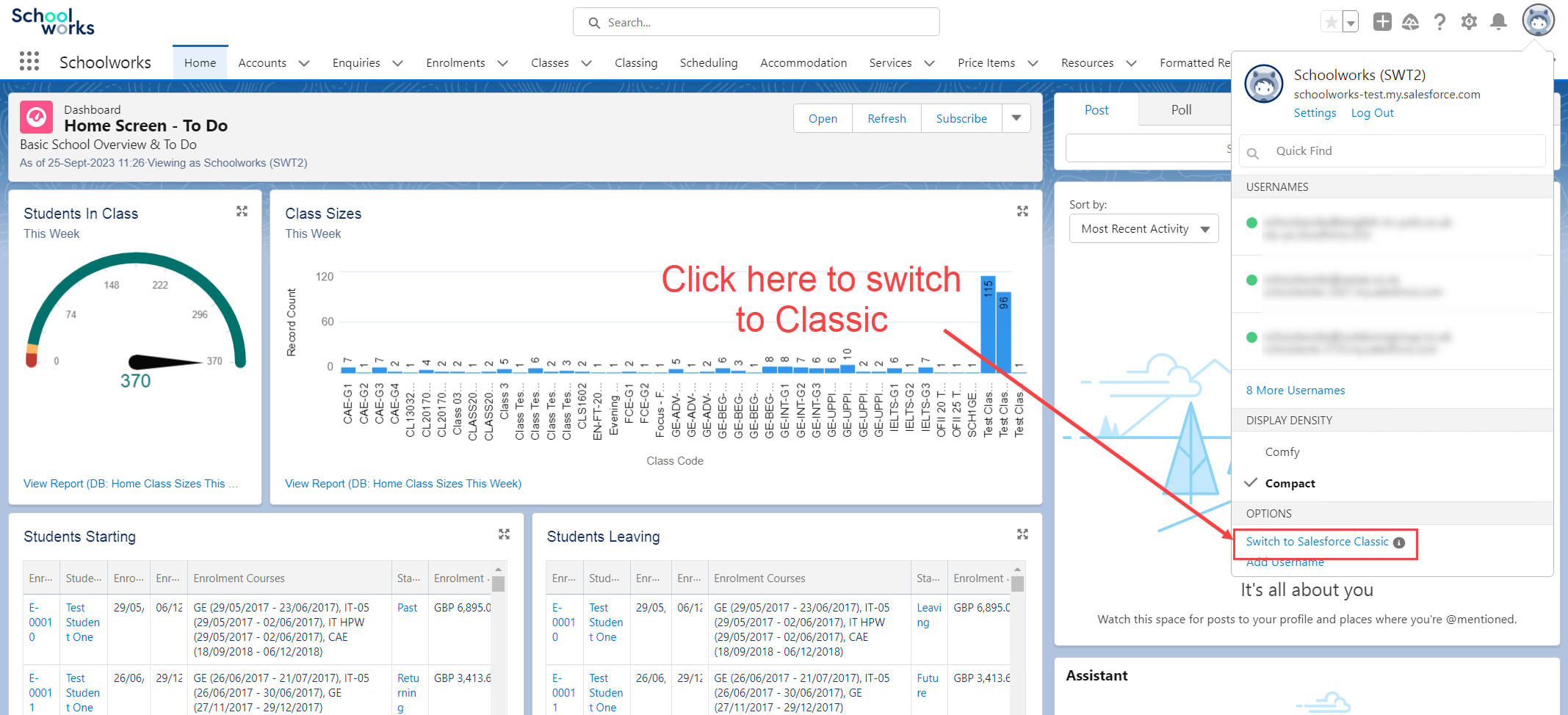 Click on your avatar in the top right corner, then select “Switch to Salesforce Classic”;