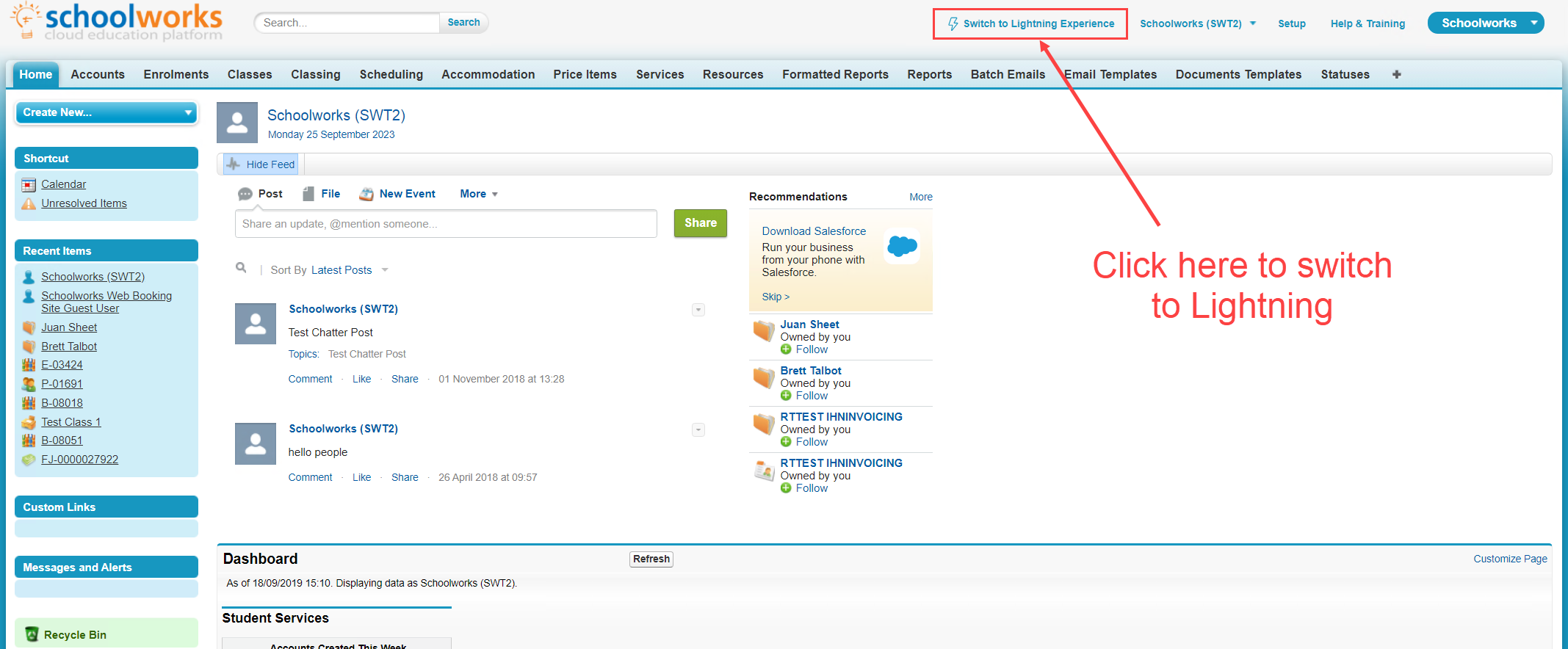 Lightning is the newer version and it is recommended all users use the Lightning interface to use Schoolworks.
