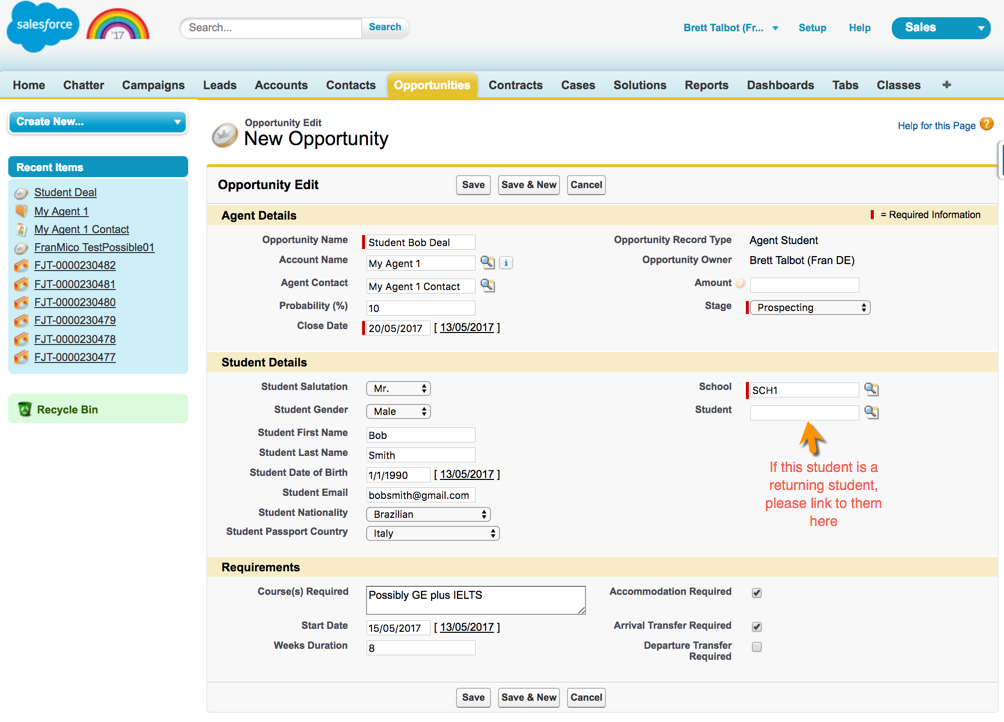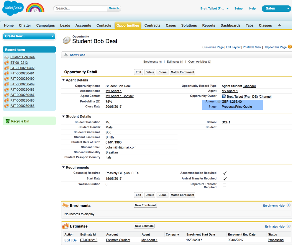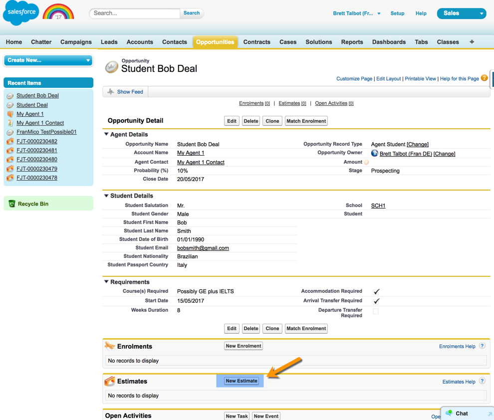 How to: Create an Agent Student Opportunity, a related Estimate and convert to Enrolment
