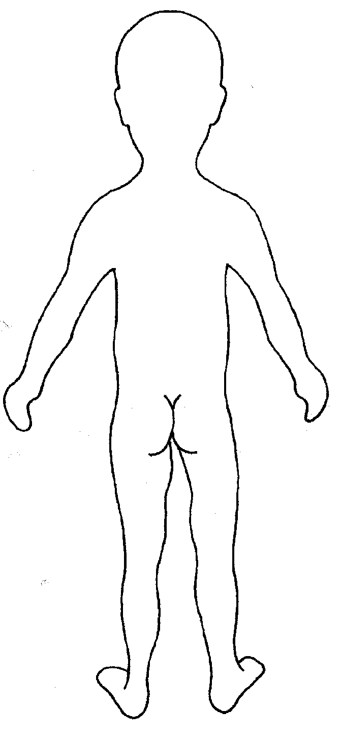 At no time should an individual teacher/member of staff or school take photographic evidence of any injuries or marks to a child’s person, the body map below should be used. Any concerns should be reported and recorded without delay to the appropriate safeguarding services, e.g. Social Care direct or child’s social worker if already an open case to social care.