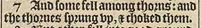 7 And some fell among thorns: and the thornes sprung vp, & choked them.