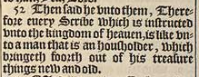 52 Then said he vnto them, Therefore euery Scribe which is instructed vnto the kingdom of heauen, is like vnto a man that is an housholder, which bringeth foorth out of his treasure things new and old.