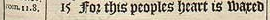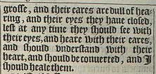 15 For this peoples heart is waxed grosse, and their eares are dull of hearing, and their eyes they haue closed, lest at any time they should see with their eyes, and heare with their eares, and should vnderstand with their heart, and should be conuerted, and I should heale them.