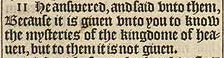 11 He answered, and said vnto them, Because it is giuen vnto you to know the mysteries of the kingdome of heauen, but to them it is not giuen.