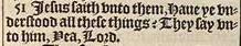 51 Iesus saith vnto them, Haue ye vnderstood all these things? They say vnto him, Yea, Lord.
