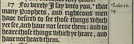 17 For verely I say vnto you, *that many Prophets, and righteous men haue desired to see those things which yee see, and haue not seene them: and to heare those things which ye heare, and haue not heard them.[*Luke 10.24.]