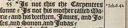 55 *Is not this the Carpenters sonne? Is not his mother called Marie? and his brethren, Iames, and Ioses, and Simon, and Iudas?[*Ioh.6.42.]