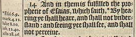 14 And in them is fulfilled the prophecie of Esaias, which saith, *By hearing ye shall heare, and shall not vnderstand: and seeing yee shall see, and shall not perceiue.[*Esai 6.9. mark.4.12. luke 8.10. ioh. 12.40. acts 28.26. rom. 11.8.]