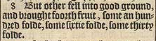 8 But other fell into good ground, and brought foorth fruit, some an hundred folde, some sixtie folde, some thirty folde.