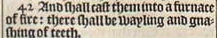 42 And shall cast them into a furnace of fire: there shall be wayling and gnashing of teeth.