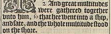2 And great multitudes were gathered together vnto him, so that hee went into a ship, and sate, and the whole multitude stood on the shore.