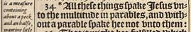 34 *All these things spake Iesus vnto the multitude in parables, and without a parable spake hee not vnto them:[*Marke 4.33.]