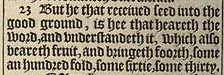 23 But he that receiued seed into the good ground, is hee that heareth the word, and vnderstandeth it, which also beareth fruit, and bringeth foorth, some an hundred fold, some sixtie, some thirty.