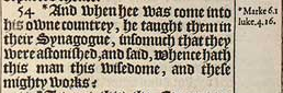 54 *And when hee was come into his owne countrey, he taught them in their Synagogue, insomuch that they were astonished, and said, Whence hath this man this wisedome, and these mighty works?[*Marke 6.1. luke.4.16.]
