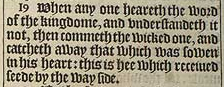 19 When any one heareth the word of the kingdome, and vnderstandeth it not, then commeth the wicked one, and catcheth away that which was sowen in his heart: this is hee which receiued seede by the way side.