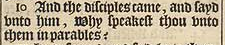 10 And the disciples came, and sayd vnto him, Why speakest thou vnto them in parables?