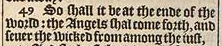 49 So shall it be at the ende of the world: the Angels shal come forth, and seuer the wicked from among the iust,