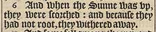 6 And when the Sunne was vp, they were scorched: and because they had not root, they withered away.