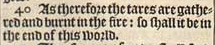 40 As therefore the tares are gathered and burnt in the fire: so shall it be in the end of this world.