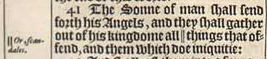 41 The Sonne of man shall send forth his Angels, and they shall gather out of his kingdome all || things that offend, and them which doe iniquitie:[||Or, scandales.]