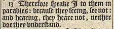 13 Therefore speake I to them in parables: because they seeing, see not: and hearing, they heare not, neither doe they vnderstand.