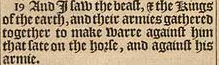 19 And I saw the beast, & the Kings of the earth, and their armies gathered together to make warre against him that sate on the horse, and against his armie.
