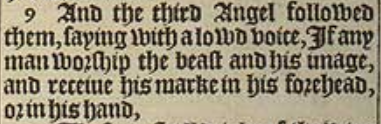 9 And the third Angel followed them, saying with a lowd voice, If any man worship the beast and his image, and receiue his marke in his forehead, or in his hand,