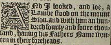 1 And I looked, and loe, a Lambe stood on the mount Sion, and with him an hundreth fourty and foure thousand, hauing his Fathers Name written in their foreheads.
