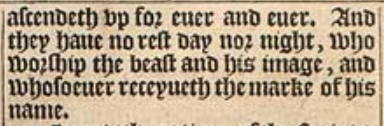 11 And the smoke of their torment ascendeth vp for euer and euer. And they haue no rest day nor night, who worship the beast and his image, and whosoeuer receyueth the marke of his name.
