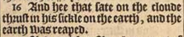 16 And hee that sate on the cloude thrust in his sickle on the earth, and the earth was reaped.