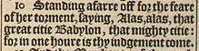 10 Standing afarre off for the feare of her torment, saying, Alas, alas, that great citie Babylon, that mighty citie: for in one houre is thy iudgement come.