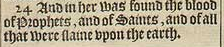 24 And in her was found the blood of Prophets, and of Saints, and of all that were slaine vpon the earth.